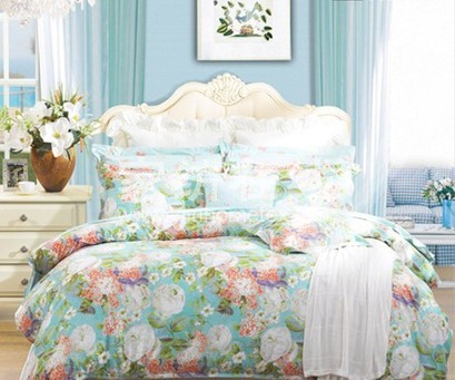 安娜家纺 纯棉床上用品四件套 田园床单 全棉贡缎 紫陌彼岸