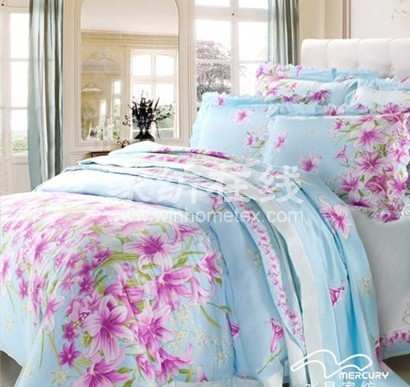 水星家纺 床上用品 全棉被套床单四件套 香水百合
