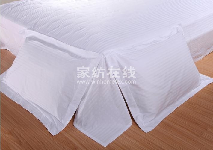 伊牧家纺纯棉四件套酒店宾馆床上用品白色条纹贡缎60S(天猫上售价352.24-433.84)