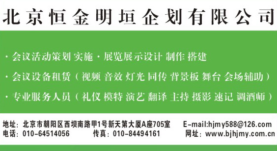- 可以为您提供专业会议活动的策划、实施、市场活动的策划、展览展示的设计、搭建、会议设备租赁、同传设备、专业灯光、音响、视频工程、及相关人员(礼仪、模特、翻译、民乐、速记、演艺人员等)的提供等为国内外企业及团体提供各类商务会议、展会、巡展、庆典活动推广等领域的解决方案。公司秉承“忠、诚、信”的企业精神竭诚为广大客户服务,扬…