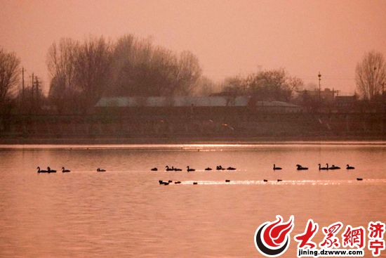 据了解,梁山泊平原水库位于梁山山体南侧,水面面积2000多亩,最大库容700万立方米,是该县重点自然保护水域。据林业部门介绍,并本地不是小天鹅的繁殖地,因此提醒市民游客要给它们一个安静安全自由的环境,以补充食物、恢复体力。