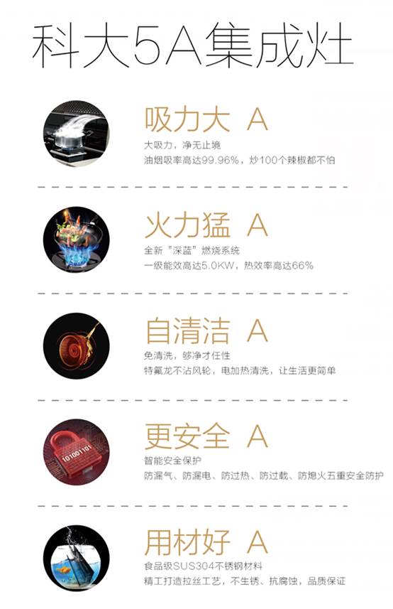 纵观整个厨电行业,能够非常快速吸走油烟且吸净率高的就要数科大集成灶了!