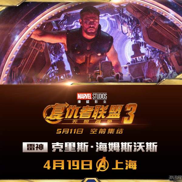 \u00A0 \u00A0《复仇者联盟3》国内定档5月11日上映,不过在正式上映前4月19日会有一场中国首映礼,地点是在上海迪士尼乐园。届时“钢铁侠”小罗伯特·唐尼、“雷神”克里斯·海姆斯沃斯、“绿巨人”马克·鲁法洛、“洛基”汤姆·希德勒斯顿都将出席。