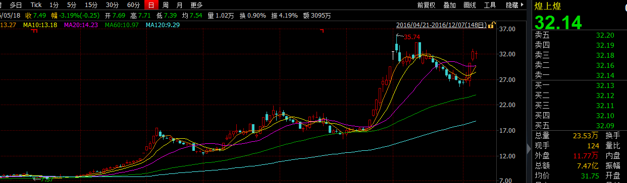 其实周黑鸭能有这样的表现,对于内地投资者来说并不惊讶。一来许多内地投资者对周黑鸭的产品有一定的了解,随处可见的门店也让投资者对周黑鸭目前的规模充满信心,其次就是A股中有一个与周黑鸭对标的企业——煌上煌(002695)股价又冲新高了。