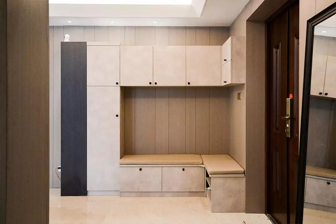 作为喜欢研究生活细节的高先生来说,入户柜应该是一个能够让一家人安心坐下进出门前整理衣服穿鞋的地方,在入户柜的设计上,也从原先的2人座调整为4人座,工作日里,不仅方便了爷爷奶奶送孩子去上幼儿园,也方便了高先生和太太每日出门前对镜确认着装。