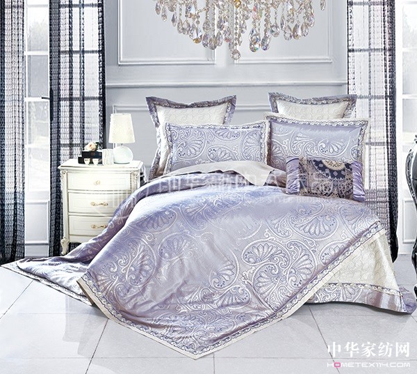 雨兰时尚生活系列床品“倾城物语”,选用床盖六件套的组合方式,A版采用莫代尔色织大提花,B版全棉斜纹素色布,色织提花是指在织造之前就已经把纱线染成不同的色彩,不仅提花效果显著,而且色彩丰富柔和,加上莫代尔的健康舒适,柔软如丝的手感更是别具一格。