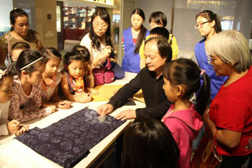 讲座现场还推出"雕龙刻凤--体会蓝印花布刻版魅力"、"板上五彩---感受蓝印花布上浆工序"、"蓝色世界---剪纸"三项手工体验。