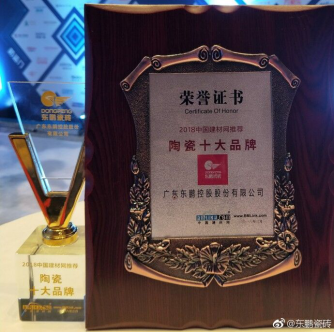 2018年度中国建筑卫生瓷砖十大品牌榜颁奖典礼,于4月份在北京国家会议中心隆重举行,该品牌榜评选受到了瓷砖、卫浴及家居行业的广泛关注,在此次“陶瓷十大品牌”品牌评选中,东鹏瓷砖荣誉上榜,获十大品牌最高荣誉,再一次成为业届及消费者关注的焦点。