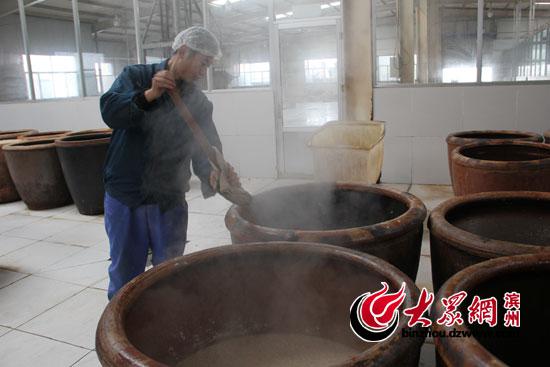 食醋发酵过程中工人师傅要不断的翻搅原料