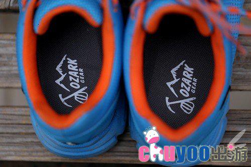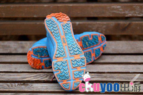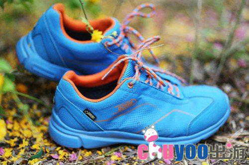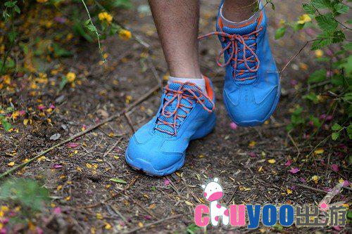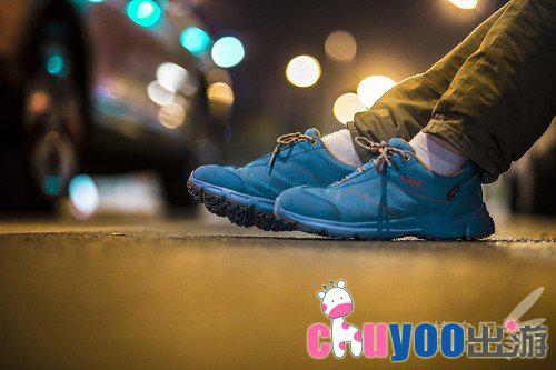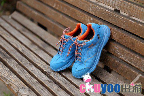鞋子整体给人感觉很不错,时尚潮流的感觉,尤其是本次体验的蓝色款,颜色亮眼拉风。传统的户外鞋一般是皮革类的牛仔鞋,偏向于运动和户外方面,时尚度有所欠缺。而本次的这款鞋却打破了这个常规。鞋面采用了超轻格纹网布,这样更加贴合于旅游运动鞋的感觉。头部和后跟均有PU皮,装饰的同时也对鞋子最容易损坏的部位有保护作用。