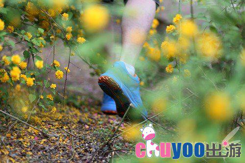 郊游时行走在花丛中