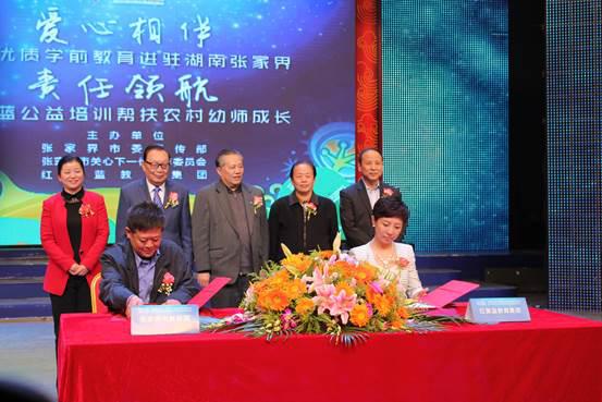 中国优质学前教育进驻湖南张家界,红黄蓝公益培训帮扶农村幼师成长。11月4日,红黄蓝教育集团与张家界市教育局共同启动的面向农村地区幼师的公益培训“百名幼师帮扶计划”签约仪式在湖南省张家界市电视台演播厅举行。