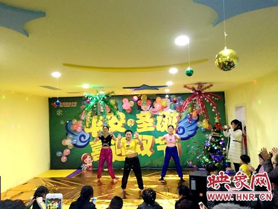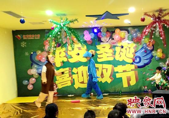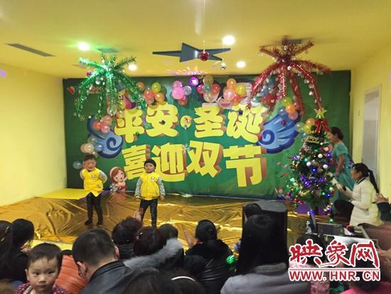 映象网驻马店讯(记者杨晓 通讯员冯启星)12月24日晚上18:00分,映象网联合遂平红黄蓝亲子园举行主题为“平安 圣诞喜迎双节”晚会。晚会现场小朋友表演了舞蹈《小苹果》、话剧《大灰狼》等节目。家长们也积极参与亲子互动游戏节目。当晚,红黄蓝的老师们也参与其中,打扮成圣诞老人给小朋友们送来书包、苹果、糖果等礼物。让遂平的小朋友、父母一起感受到了圣诞节的愉快气氛。