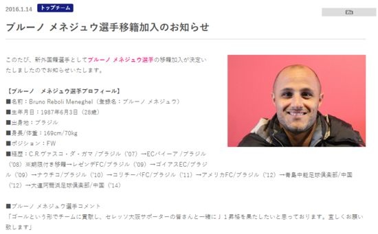 与桑托斯同样来自巴西的布鲁诺,于2012赛季中段从米内罗美洲加盟青岛中能,半赛季就打入9球表现相当抢眼。2014赛季,其加盟大连阿尔滨(现大连一方),而在本赛季的中甲赛场上,他打入了19粒进球位列射手榜第3位。赛季结束后,一方从瑞超引进了两位前锋班古拉以及穆谢奎,而不再留用同位置的布鲁诺。最终,这位巴西前锋与桑托斯一起转投J2的大阪樱花俱乐部。