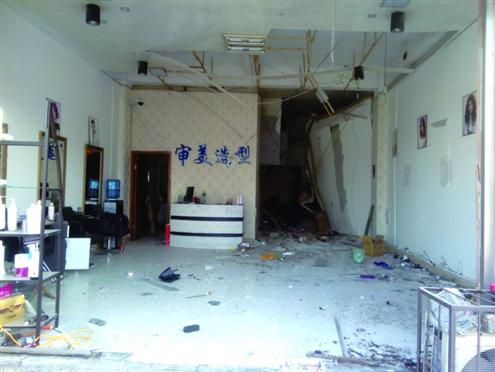 昨天记者到达现场时,两家店店主正清理现场。记者看到,由于爆炸威力巨大,两家店内一片狼藉。其中,理发店与餐馆相连的一堵墙已经坍塌,两店内的天花板都受到不同程度的损毁。“餐馆的厨房正靠着理发店,估计当时菜馆的员工正在炒菜。”一位知情的市民称,爆炸发生后,餐馆内一名工人的胳膊和面部被轻微烧伤。据他说,多亏当时两家店内都没有客人,两家店门前也无行人,因此没有造成其他人受伤。“当时我正在打扫卫生,爆炸后我的店门都被炸飞了。”理发店的店主说,幸运的是他并没有受伤。但他称,这次爆炸给他带来了巨大的损失,不仅是店内的物品,尤其是春节临近,爆炸很影响他的生意。