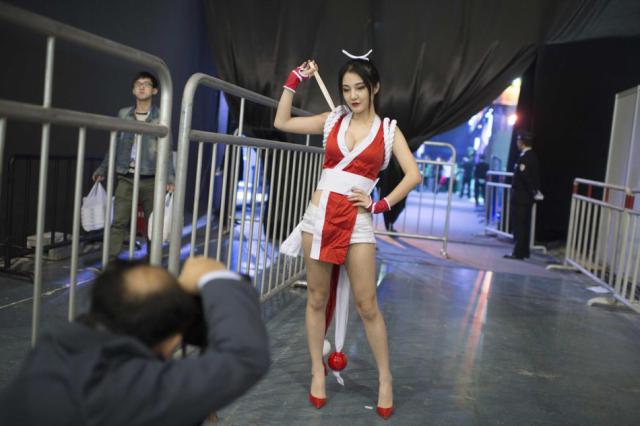 那一年,她参与了国内30多项知名度颇高的活动,与游戏商、杂志、汽车制造商、电视影视等合作密切,包括意外成为NBA名记谢里丹微博征婚的女主角等,在网络人气迅速飙升。图为桂晶晶为一场COSPPLAY比赛进行排练,导演在分配桂晶晶的台词。