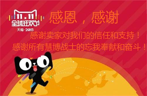 2015双11购物狂欢节,慧博和合凭借专业技能协助众多商家创造了销售奇迹,更凭借优质服务与客户共奋战同成长,在此,慧博和合感谢所有一路同行的伙伴、客户,我们将用更好的服务回馈大家的信任和支持,让我们继续携手,共创双十一新辉煌!