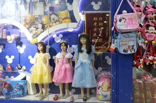走进长沙尚佳迪士尼一站式综合体验店,我们仿佛置身于一个童话的王国,各种款式、颜色各异的公主裙让人眼花缭乱,纯洁高贵的白色、美丽可爱的粉色、明朗活泼的黄色、奇异梦幻的紫色、青春靓丽的绿色、温柔宁静的蓝色……满足了每个小姑娘对公主裙的所有幻想。在我们探店的过程中,一群花枝招展的小姑娘正在试穿公主裙,她们一个个笑魇如花,畅游在自己的公主梦中:纯洁高贵的白雪公主、聪明优雅的贝儿公主、温柔机智的灰姑娘、美丽单纯的睡美人、自信乐观的安娜公主……当然,这里不光有裙子,其他迪士尼的日用品也是琳琅满目。书包、水杯、袜子、帽子、内衣裤、雨伞、雨衣、雨鞋、围巾、眼镜、手表、文具、玩具等千余款产品陈列其中,可以说妆扮了孩子童年生活的方方面面。