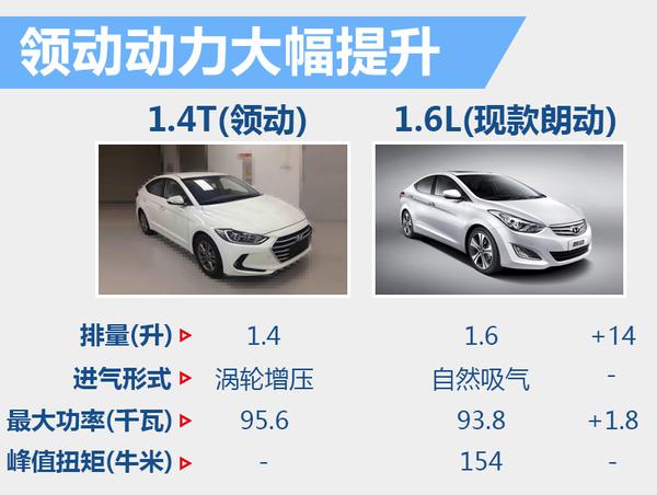 与现款朗动相比,北京现代领动外观得到大幅升级,新车前脸采用极具现代家族气息的六边形镀铬进气格栅,外加全新设计的前大灯和回旋镖式的雾灯装饰,让整车散发出年轻时尚的气息。领动率先搭载小排量的1.4T涡轮增压发动机,匹配7速双离合变速器(DCT),在同级别车型中非常具有竞争力。