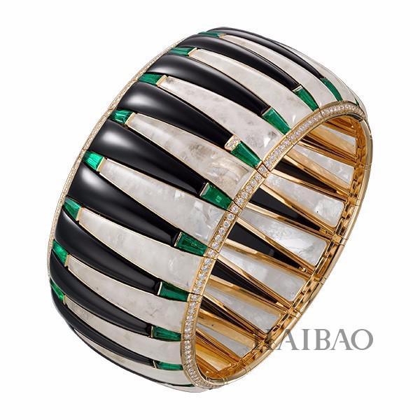 18K黄金,长阶梯形切割祖母绿,天然水晶,缟玛瑙,明亮式切割钻石