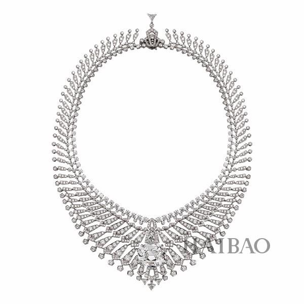 铂金,水滴形切割钻石,总重16.67克拉,长阶梯形切割钻石,总重1.14克拉,玫瑰形切割钻石,总重0.22克拉,明亮式切割钻石,总重2.07克拉