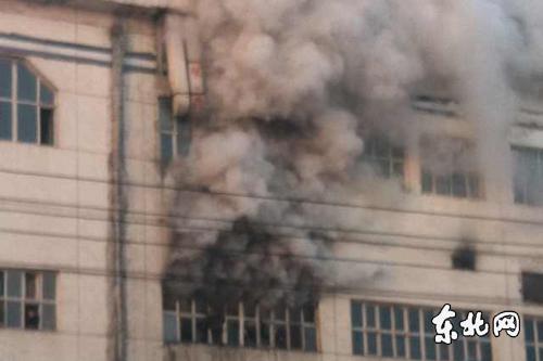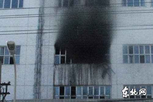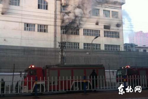 制药车间的外窗里冒出浓烟。东北网记者 张皓然 摄