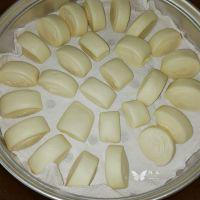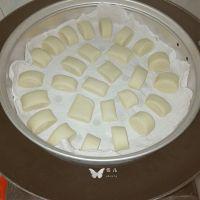 13. 将小馒头摆在蒸笼架上。