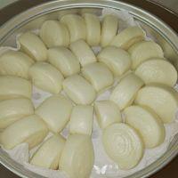 12. 用刀切成大小均匀的小馒头。
