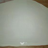 10. 将面团擀开,擀薄。