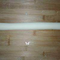 11. 在面片上刷层清水,然后将面片卷起。