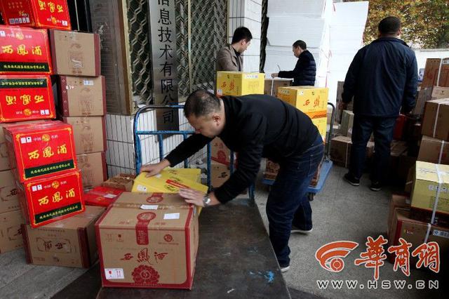 11日早,在宝鸡市陈仓园一个900平方米的大库房外,几辆物流车辆已经装箱完毕准备发出,在库房门口,工作人员打包货物、贴单子忙得不可开交。在库房内,满满的货物堆放的有两层楼高。在库房最里面,是这家公司的营销团队和客服团队,在他们面前堆放着零食、烟和一些提神饮料,一夜未睡的倦容还深深地印在脸上。负责人王峰介绍说,他代理了多个品牌的西凤酒,去年“双十一”西凤酒的销售额达到了400万元,今年从11月11日零点开始,1个小时内销售额已经突破100万了,到11日10点,10个小时内销售额已经超过去年的400万,大约能销售约10万瓶。“我是这几年全国电商白酒行业里存活下来为数不多的一个,5年前第一次参加‘双十一’活动,当时觉得没有什么,半夜正常睡觉时接到淘宝小二的电话,叫我起床参加活动,第一年营业额只有3万多一点。”王峰说,通过活动,他越来越意识到了电商的厉害,这几年“双十一”销售额从当初的3万到10万,再到80万、400万,今年他的目标是完成1000万的销售额,如果一切顺利应该不是问题。据了解,从11日零点接单开始,已经陆续发货。西安的部分买主11日当天就可以收到货物了。