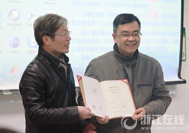 谢宏接受浙江大学颁发的兼职研究员聘书。