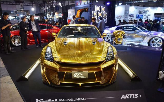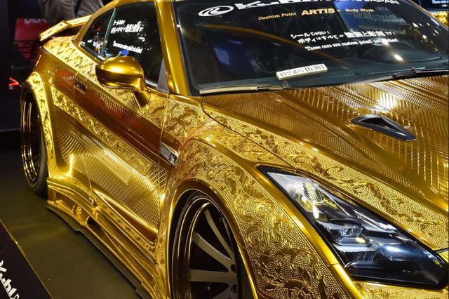 一辆金色涂层加上3D钻石工艺的Nissan GT-R