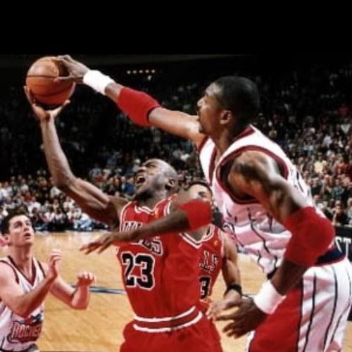 看看奥拉朱旺的大帽,干净利落,看来乔丹也不是任何防守都能破的。