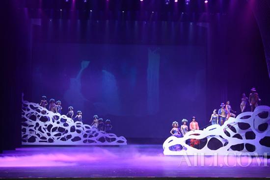 “爱的传奇-爱慕2015发布会”采用舞台剧的形式,将声、光、电相结合,以独特的圆形舞台设计加以新颖科技的无载体全息影像的运用,展现出秀与剧的跨界新时尚。纵观全场,不禁感叹由数十位设计师倾心研发,凝聚成近百套共三个系列的精美作品,也不由折服经甄选六十位名模携手明星乐队以及特效演员,汇聚足尖T台展示及艺术表演共同诠释的“爱的传奇”。这是一次创意的碰撞与融合,是一场“秀与剧”的跨界合作。这场发布会不同于以往的时尚秀场,将海洋中沉遂意蕴与神秘气息幻化成惊艳的设计作品展现给大家,演绎出全新的跨界时尚,为厦门国际时尚周注入了独特的魅力。