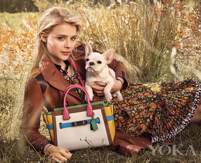 - 继2015春夏系列之后,Chloe Grace Moretz 再度为Coach代言,摄影大师 Mikael Jansson 掌镜。这位少女穿着波西米亚风格的碎花长裙,撞色手袋在身旁点缀,而怀里的小狗则可爱无敌,成功抢镜。2015年春夏是Chloe Grace Moretz为Coach代言的第一个系列,品牌总监Stuart Vevers认为她自由奔放的形象性格完美诠释了Coach春季系列的少女感。