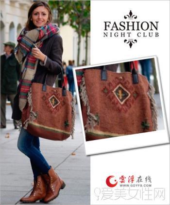 【小编的话】:如果是不太喜欢大片的波西米亚风格的图样的菇凉,可以选择一个波西米亚风格的大包,搭配简单的休闲服饰既时髦又不会很违和。