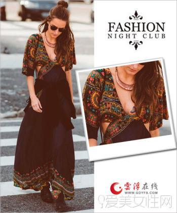 【小编的话】:既然要做女神,一条漂亮的波西米亚风格长裙自然是不容错过了,搭配黑色高跟鞋,十分优雅。