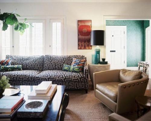 黑白沙发融入蒂芙尼蓝的墙面,令人过目难忘。