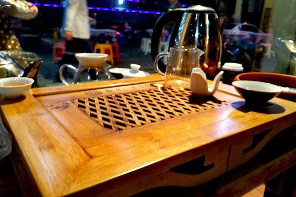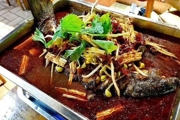 这家店论环境来说,是国安路上最好的,大大的招牌十分醒目,一到晚上便朋满客满。店内风格走的是复古怀旧风,基本采用的都是木质材料,古色古香的,显得很有年代感。店面很大,适合各类人群的聚餐,甚至还有一些小小的隔间,感觉更适合情侣,或者是亲密的朋友在一起小聚。值得一提的是这里的桌子,每一张都印刻着诸葛烤鱼这4个字,会让人感受到那种传承的力量,会让人觉得这种有历史的菜式就该是尤为深刻并且去细细品味其美好的。秋冬时节,来一份热腾腾的烤鱼,一杯喜爱的饮料,就很是满足了,暖胃又暖心。