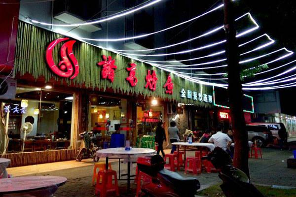 诸葛烤鱼的做法比较简单,先将现杀的活鱼用秘制调料经特殊方法腌制,然后在火上烤制九成熟,约10分钟左右。期间根据鱼的烤制状况,刷上两次老油,以期保证油的香味充分进入鱼肉中,再撒上孜然粉上烤架稍微烤1分钟便可以出炉了。最后将其放在盛有特制汤底的盛具中,边吃边以小火持续炖煮,让鲜香麻辣的酱料一点点慢慢渗透进鱼肉中。烤鱼的做法都差不多,讲究的就是用料和选材是否用心。诸葛烤鱼的配方经后人反复修改,所选中草药及调料已多达40余种,汤汁不仅有鱼肉的鲜味儿,还有独特的焦香味与浓郁的料香味。精选的活鱼烤制出来的肉质是紧实细腻的,鱼皮带上了一些板炭烘烤的烟火味。