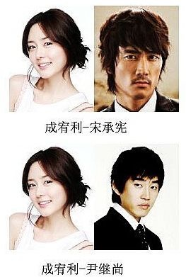 成宥利和宋承宪分手后搭上了god组合成员尹继尚,两人交往了很长时间,但是终以分手告吹。尹继尚公司曾发表声明两人在2001年末尹继尚去服兵役之时便已分手,而成宥利也曾在节目中透露无法忍受尹继尚玩游戏,看来两人的问题很多。