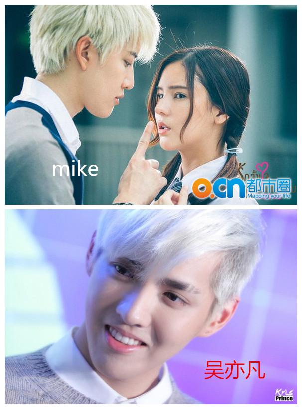 自泰版《浪漫满屋》和《一吻定情》开播后人气暴涨的男猪脚Mike,一头白发像极了动漫原型,但是网友表示,觉得Mike和人气小天王吴亦凡有点相像,而且两人都有过白发造型!
