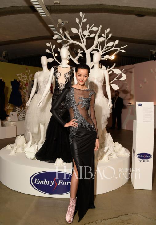 超模裴蓓身穿安莉芳 (Embry Form) 人鱼透视长裙亮相“中国风尚印象”静态展揭幕晚宴