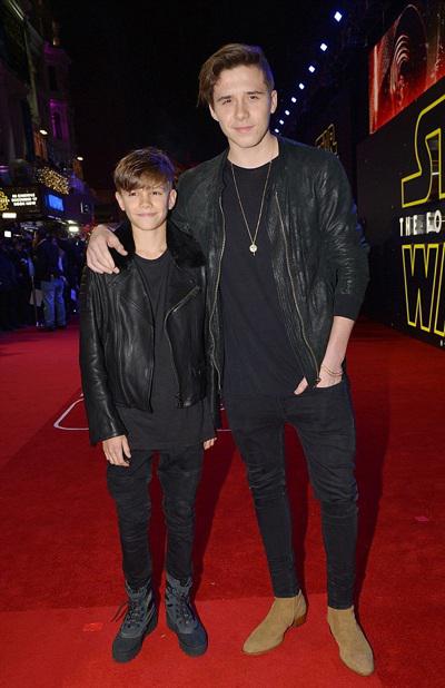 最近,贝克汉姆家的大儿子布鲁克林和二儿子罗密欧出席了电影《星球大战:原力觉醒》的伦敦首映礼。当晚,没有父母的陪伴,布鲁克林和罗密欧照样表现大方,两人身穿机车装,手插裤兜,帅气任拍。