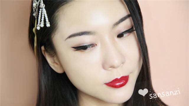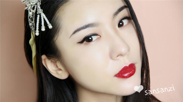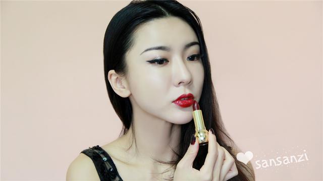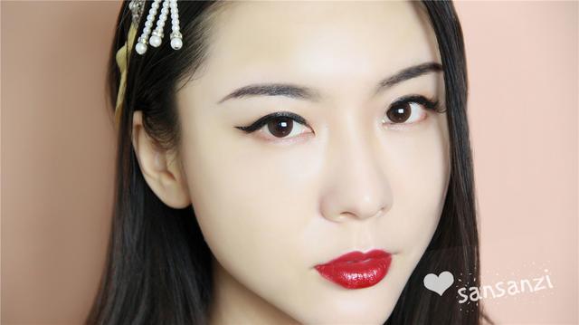 涂上红唇,是不是一下子妆面就幻彩了起来!这款妆容的唇部线条画得比较明显,显得气场十足,也不会很小女孩。