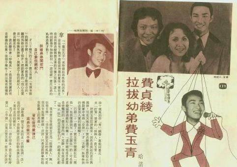 之后,弟弟张菲也被她带红,当时人称投身演艺圈的张家三姐弟是:“妖姬(费贞绫)、小丑(张菲)、圣人(费玉清)”。1977年,费贞绫与二弟张菲、小弟费玉清一起主持中视的歌艺节目《俪人行》,那时的画面还是很和谐的。