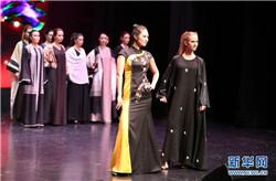 1月13日,在阿联酋迪拜,演员们在舞台上进行旗袍展示。 当天,“大爱无疆”阿联酋2016旗袍春晚在迪拜酋长国购物中心剧院举行。