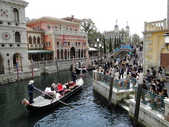 东京的迪士尼乐园更是推出来贡多拉游湖,在船上的新人,接受来自河两岸亲友的现场祝福。费用大约310,000日元。