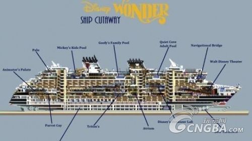 CharlesGoldburn打造的这款迪斯尼邮轮名为迪士尼奇迹号(DisneyWonder),是迪士尼海上巡游线的第二艘邮轮,作者将这艘邮轮彻底搬到了游戏《我的世界》中去,什么叫彻底呢?就是1:1,工作量十分惊人。